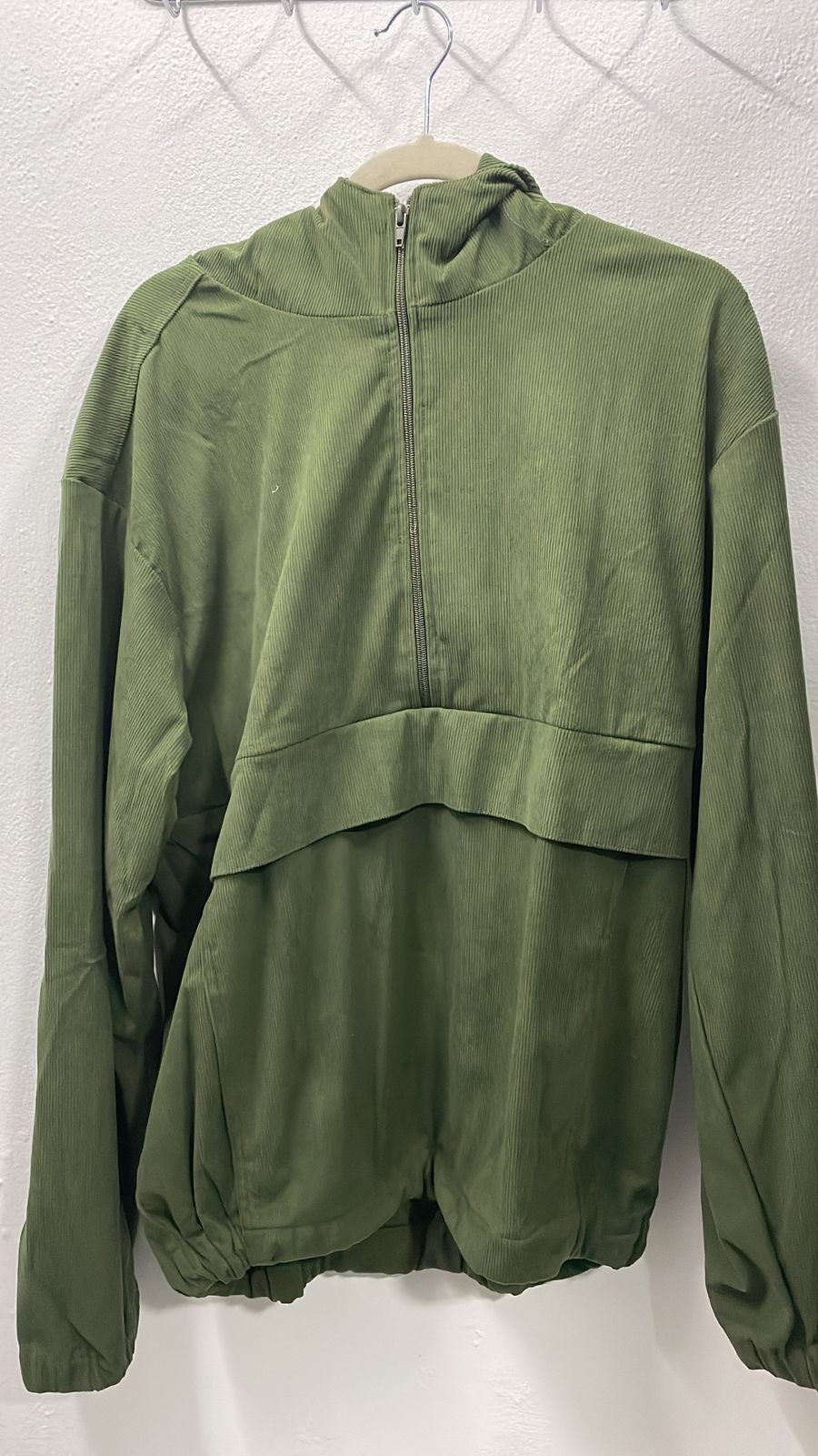 Su medio cierre te permite ajustar el escote a tu gusto, ofreciendo versatilidad para diferentes looks y temperaturas. Confeccionado con un tejido de corduroy de alta calidad, este buzo no solo es visualmente atractivo, sino también increíblemente suave al tacto y duradero. Su tonalidad verde le aporta un toque moderno y fácil de combinar con una amplia gama de colores neutros y terrosos.